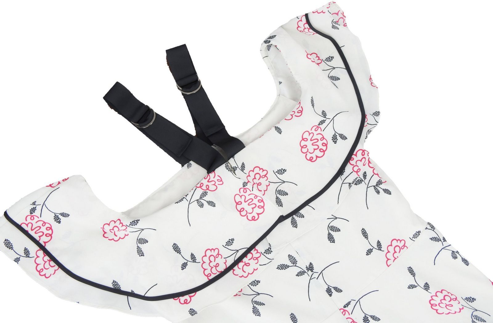 Odkryte ramiona, przy szyi dwie regulowane tasiemki podtrzymujące sukienkę