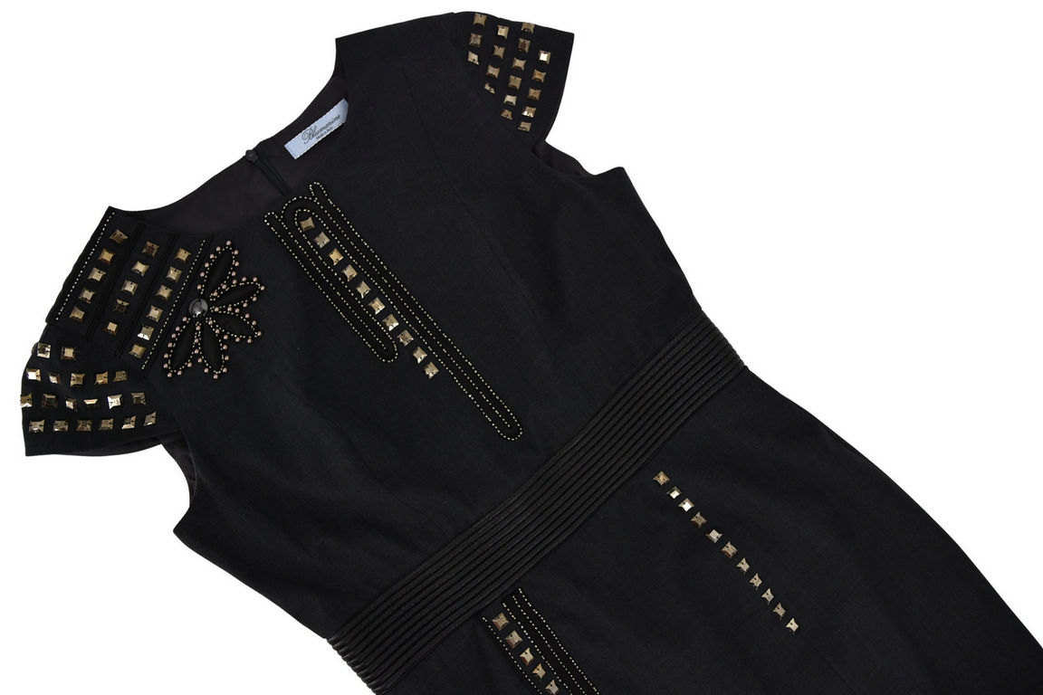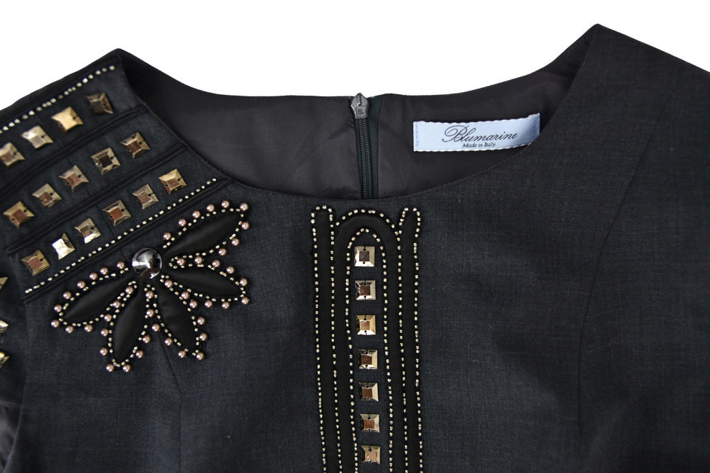 BLUMARINE sukienka grafitowa ołówkowa koraliki dżety 38