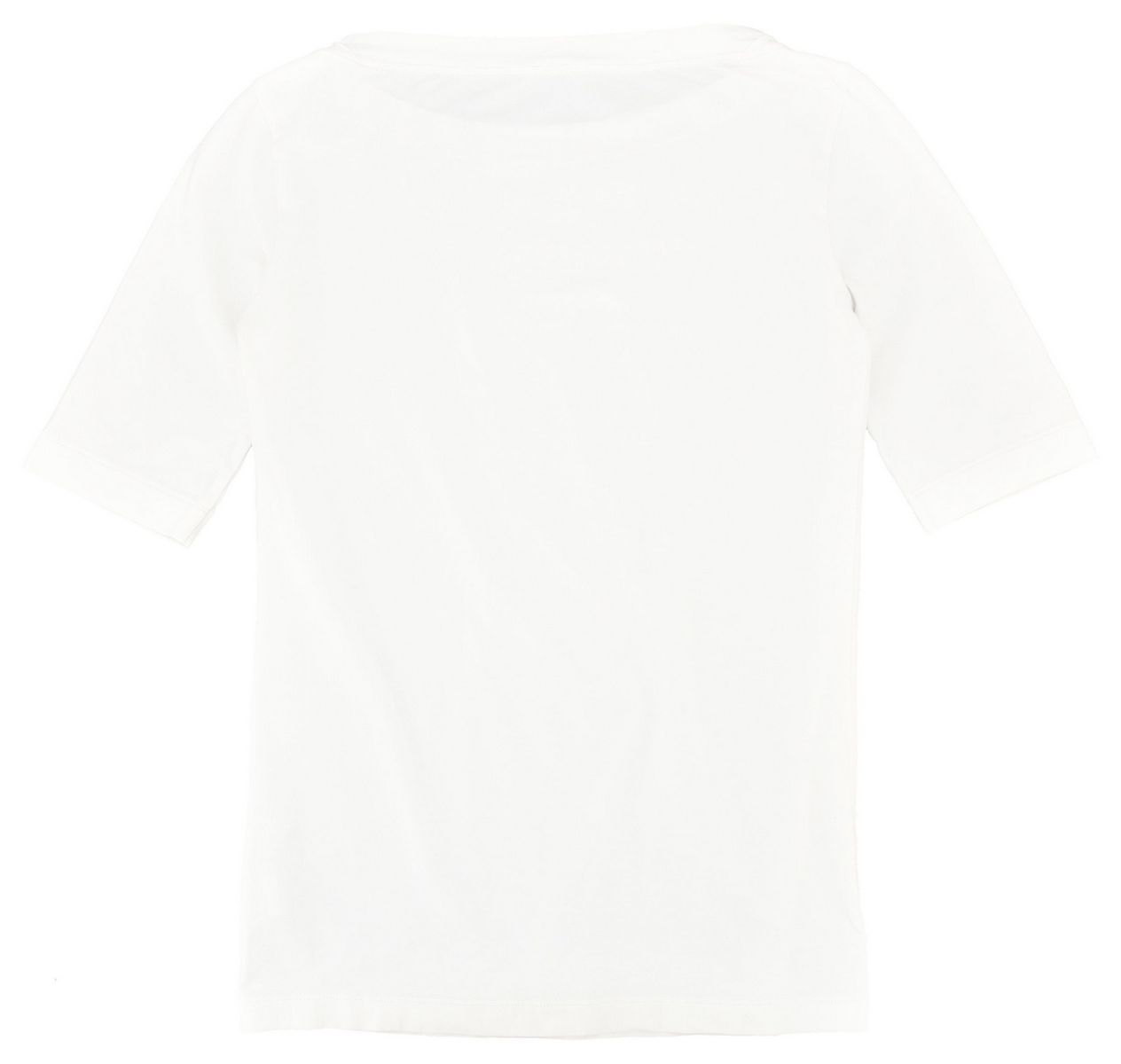 Bluzka damska w kolorze białym z krótkim rękawem. Elastyczna, dopasowana do ciała. Prosty, klasyczny krój.