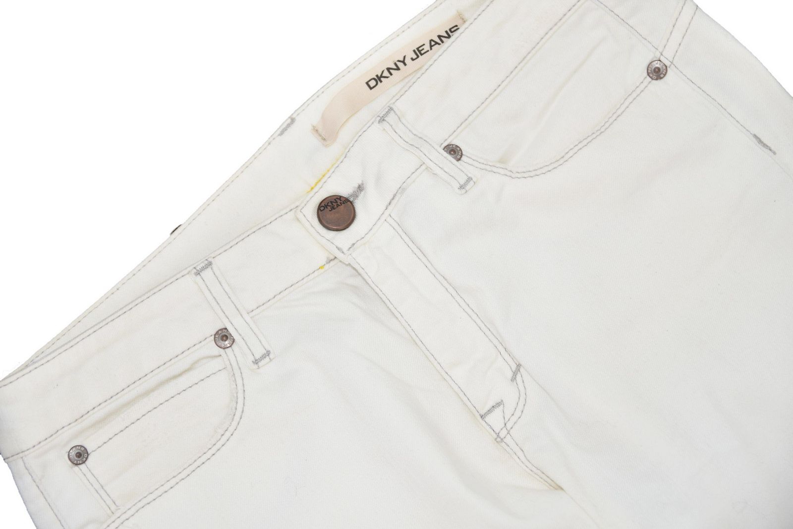 DKNY spodnie damskie jeansy kremowe ecru proste nogawki 29