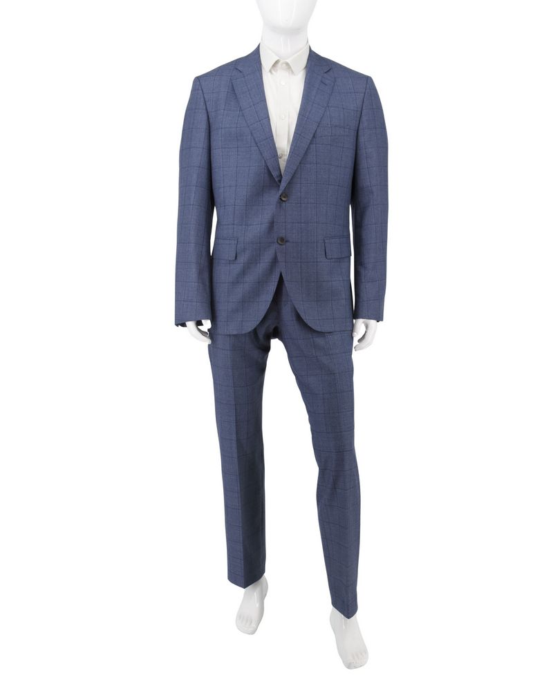 Garnitur męski dwuczęściowy, składający się z marynarki i spodni. Kolor niebieski, wzór w kratę. Wykonany z wełny z dodatkiem jedwabiu. Krój REGULAR FIT. Marynarka jednorzędowa, zapinana na dwa guziki. Spodnie z lekko zwężanymi nogawkami, zaprasowane w kant. Garnitur na wiele okazji, idealny na spotkania biznesowe jak i formalne okazje. Idealny dla mężczyzn lubiących wyrafinowany styl i nowoczesny wygląd.