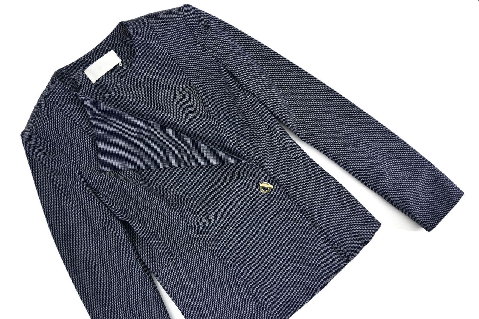 Odzież używana. Żakiet damski elegancki w kolorze granatowym w drobną kratkę