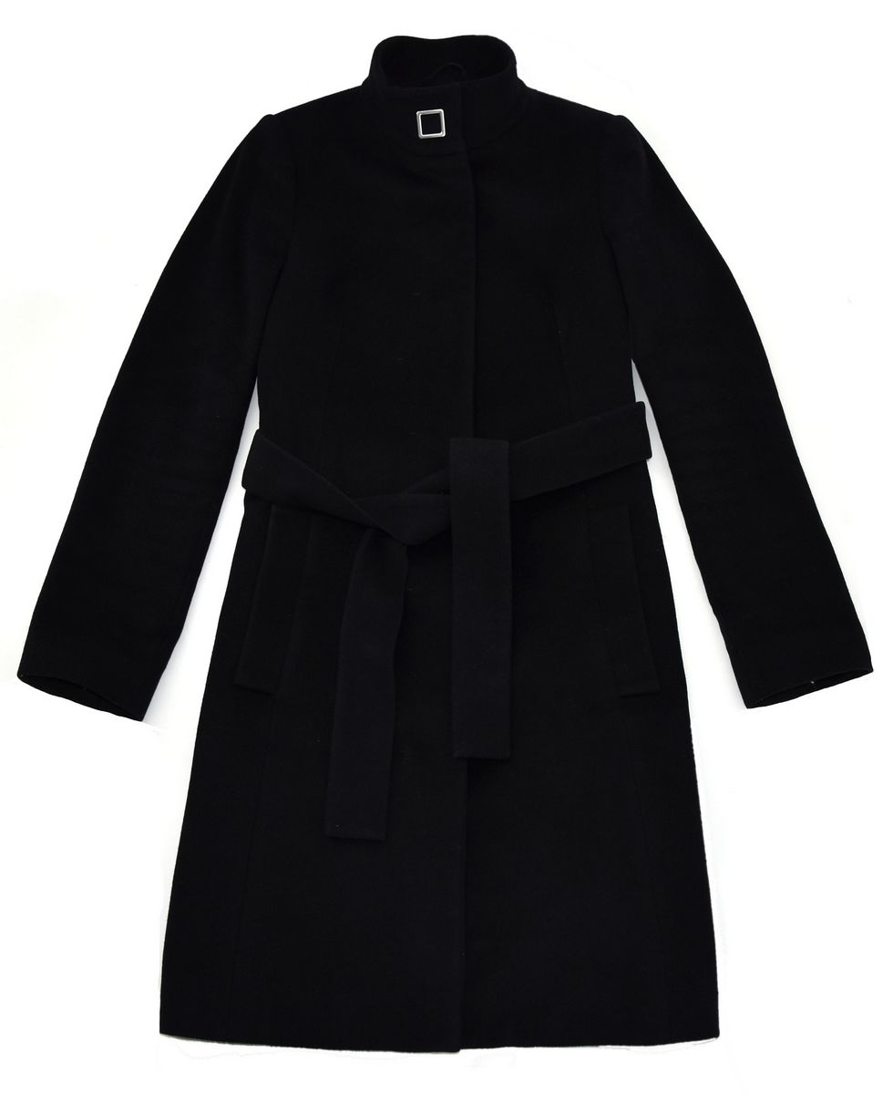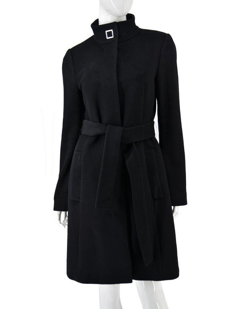 Odzież używana. Elegancki płaszcz damski wykonany z wełny i kaszmiru, przejściowy, idealny na chłodniejsze dni. Miękki w dotyku. Kolor czarny