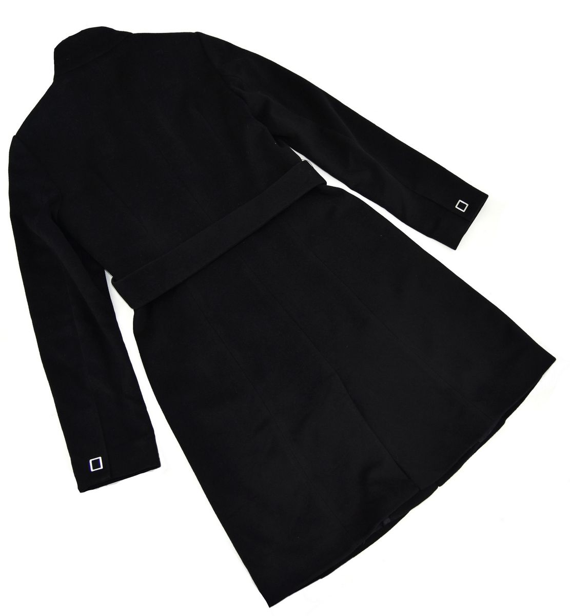 Elegancki czarny płaszcz wykonany z mieszanki wełny i kaszmiru