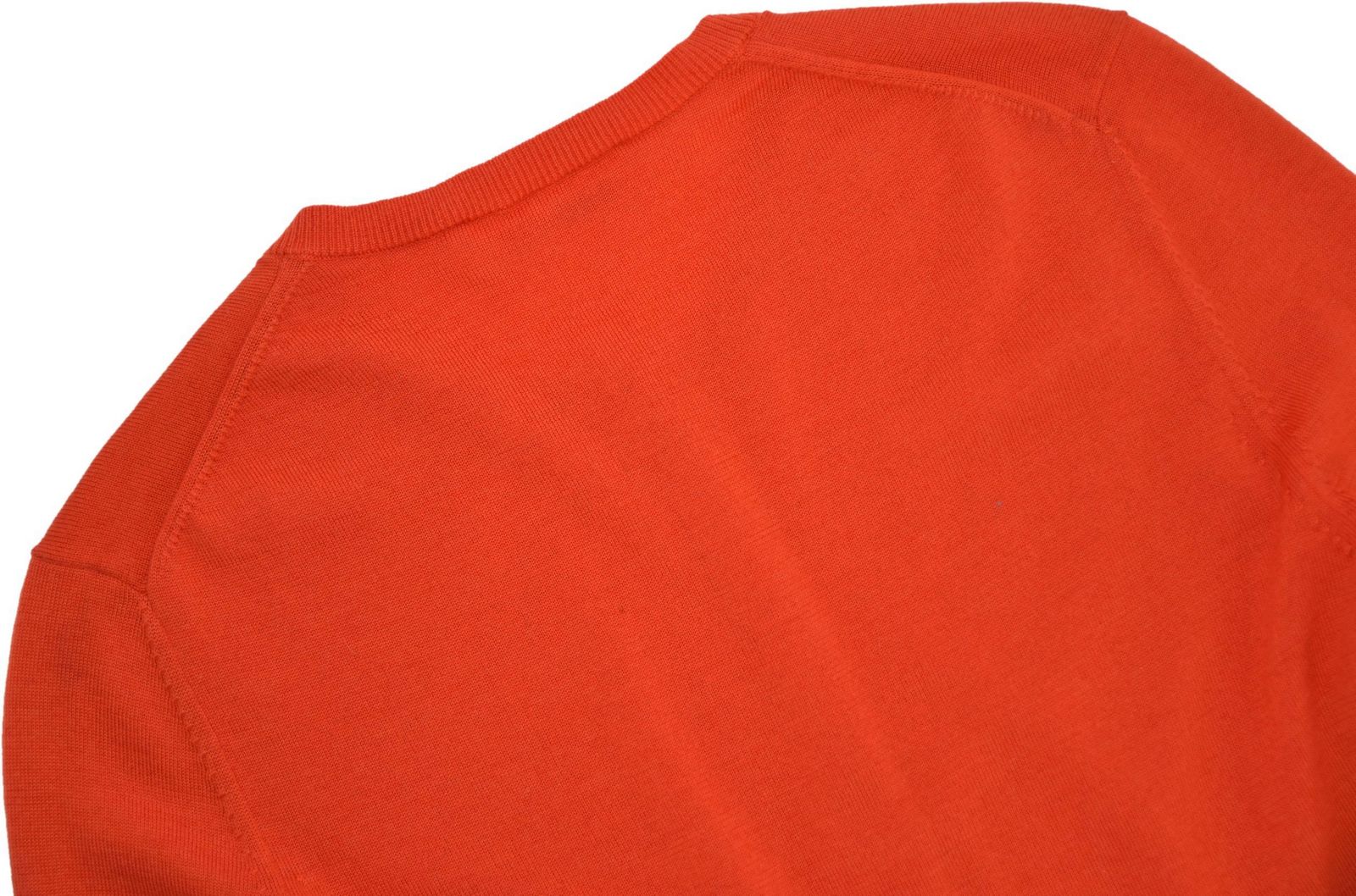 Odzież używana. Sweter damski w kolorze pomarańczowym wykonany z miękkiej wełny merino. Rozpinany