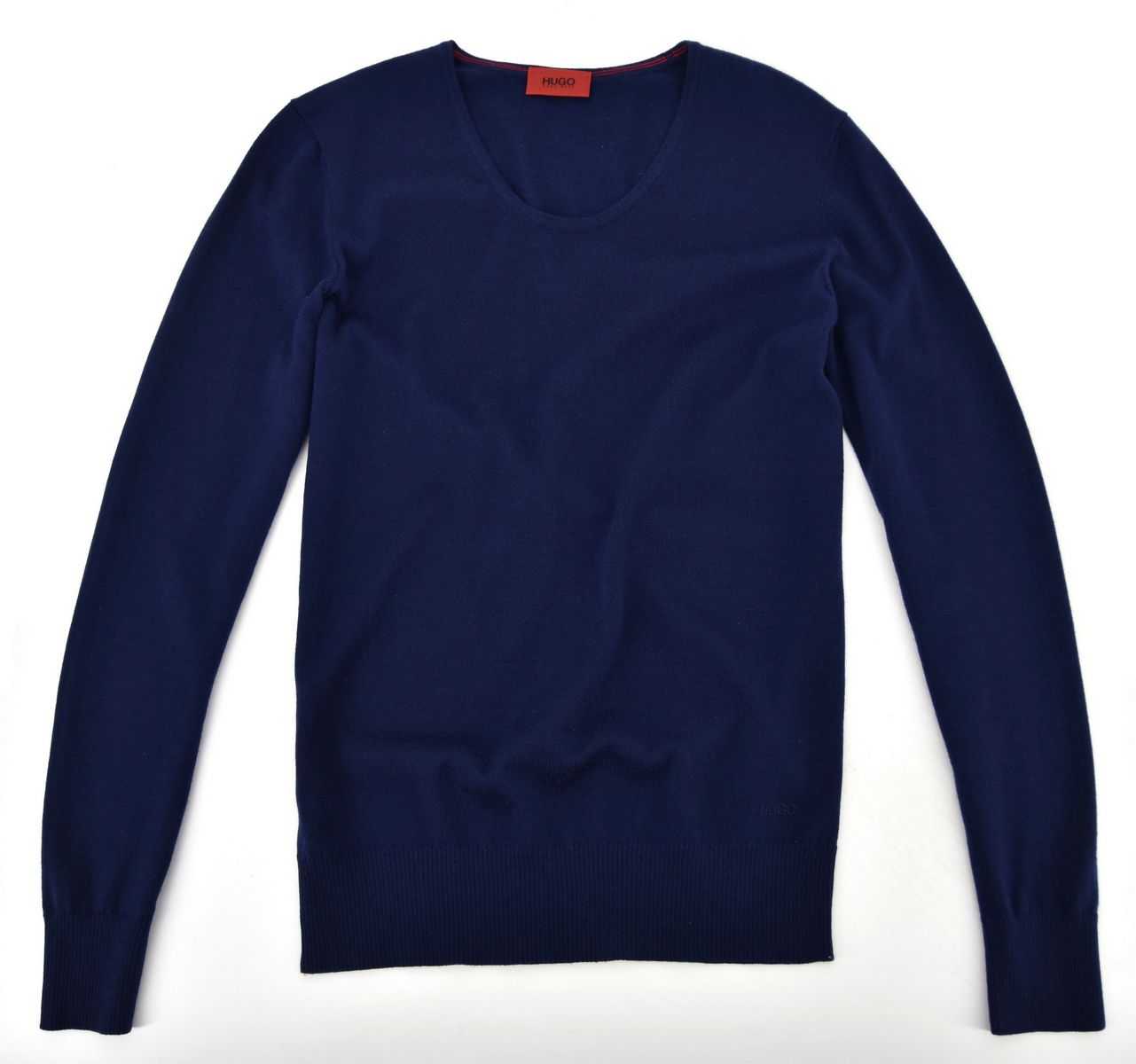 HUGO BOSS sweter męski granatowy z wełny ciepły S/M