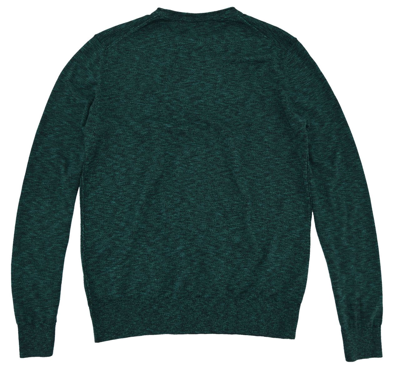 Odzież używana. Męski sweter w kolorze zielonym, wzór melanż. Wykonany z miękkiej bawełny, o eleganckim i klasycznym kroju