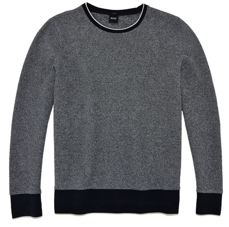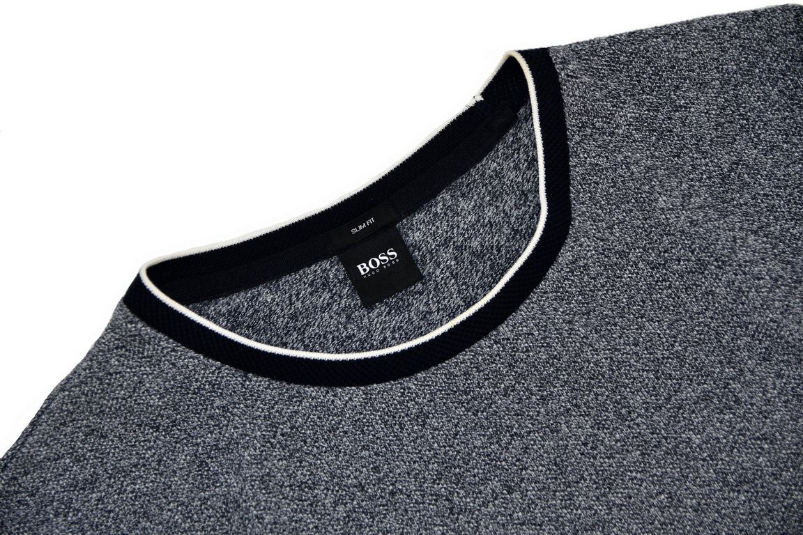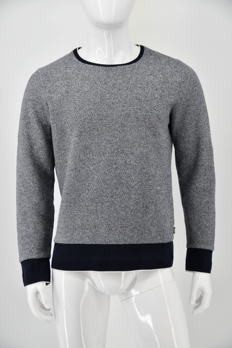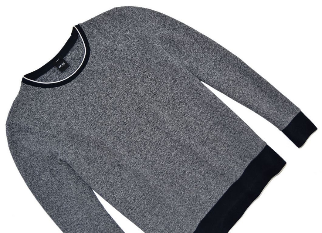 Sweter męski z wzorem w szary melanż wykonany z grubej bawełny. Miękki w dotyku, komfortowy w noszeniu. Krój prosty. Ściągacze przy rękawach i na dole. Idealny do wielu codziennych stylizacji.