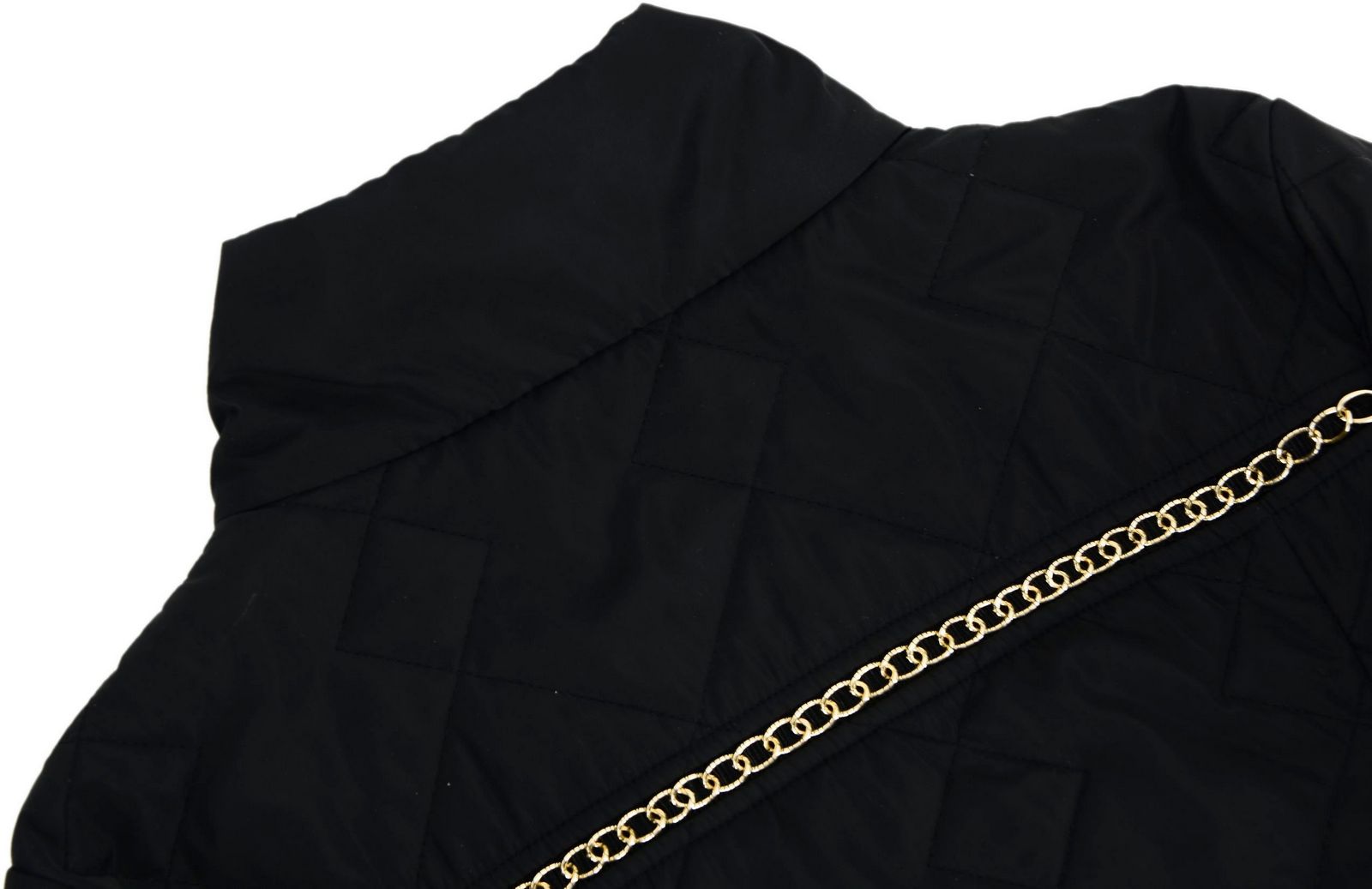 Luksusowa kurtka damska pikowana, ocieplana, w kolorze czarnym, z ozdobnymi łańcuszkami