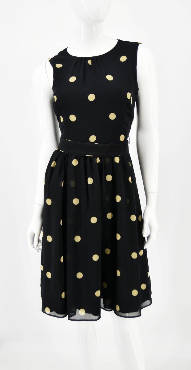 Odzież używana. Elegancka sukienka szyfonowa w czarnym kolorze z delikatnymi groszkami. Idealna na formalne okazje
