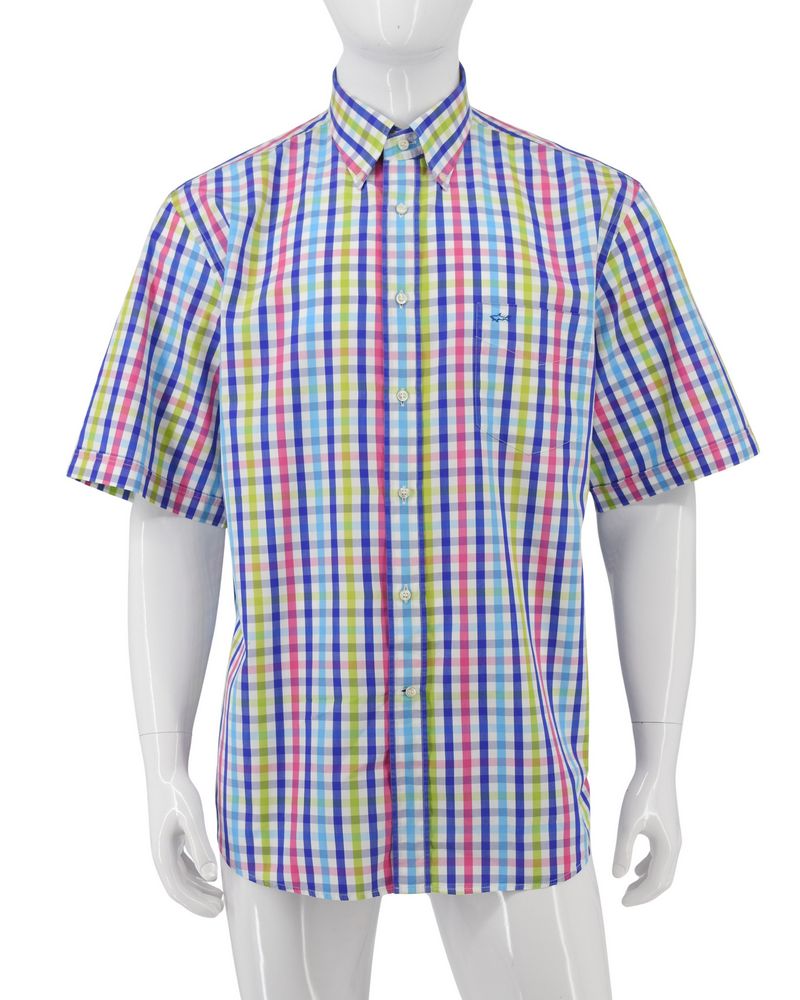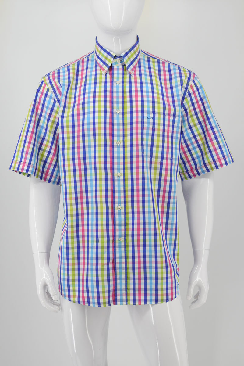 Odzież używana. Męska koszula w kratę z krótkim rękawem. Wykonana z bawełny, w wielu kolorach