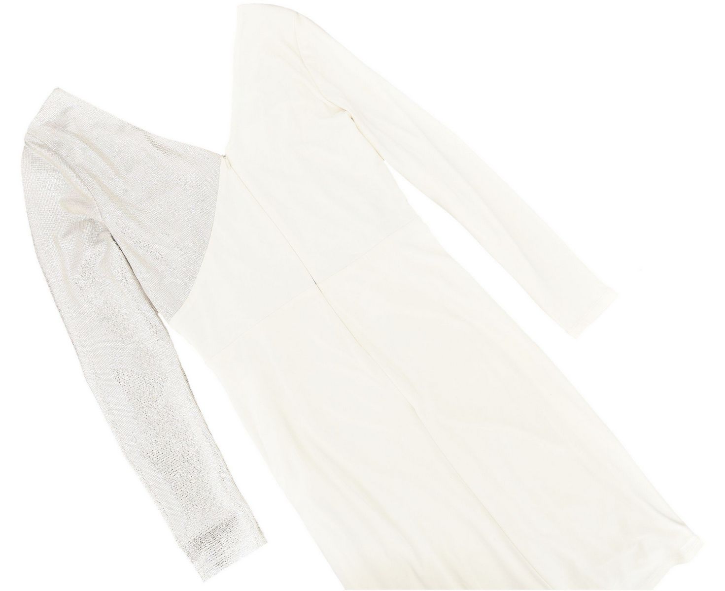 Odzież używana. Elegancka sukienka wieczorowa. Idealna na imprezę. Kolor ecru nadaje jej subtelny wygląd, a długi rękaw dodaje klasy i elegancji