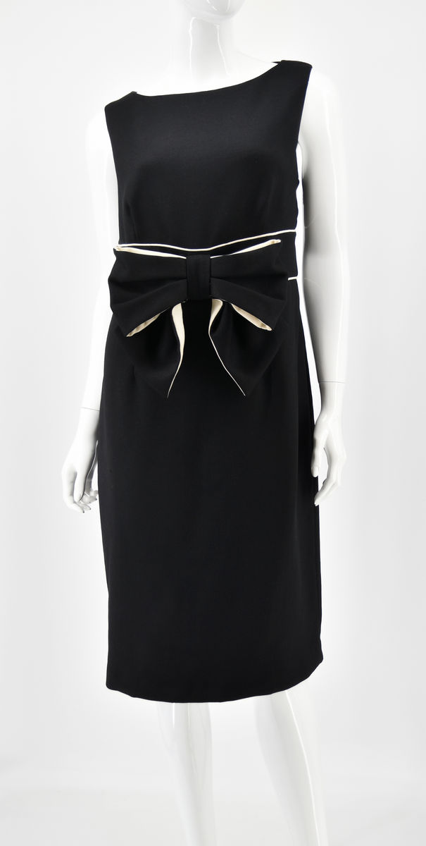 Odzież używana. Elegancka czarna sukienka z kokardą. Idealna na wieczorne wyjścia. Wykonana z wełny.